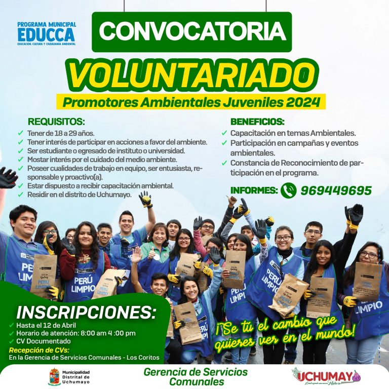 La Municipalidad Distrital de Uchumayo invita a toda la población a participar en la convocatoria laboral (labores temporales) de la empresa Obras Hergón S.A., a través de la Bolsa de Trabajo. Ayudantes (Peón): 28 vacantes Vigías: 02 vacantes Fecha límite para la presentación de CV: Hasta el miércoles 01 de abril 09:00 a.m. Recepción de…