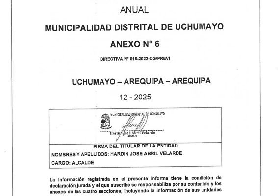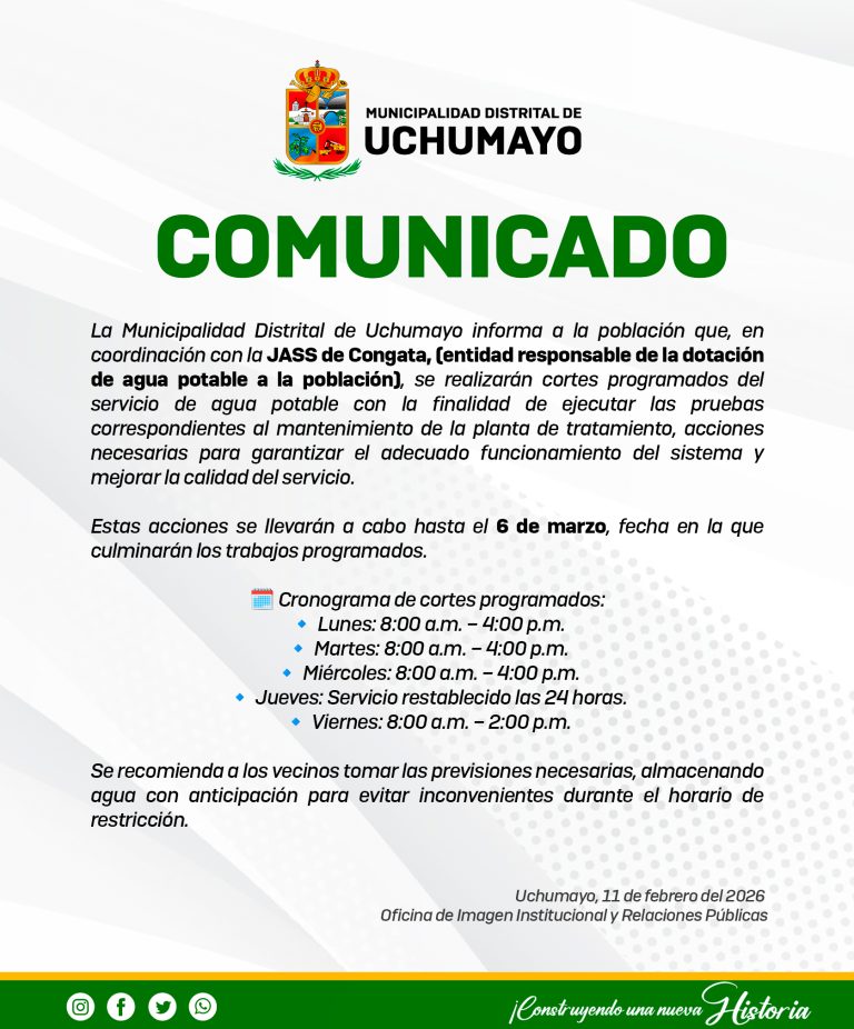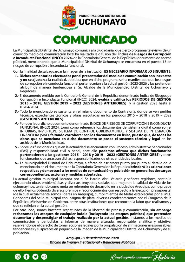 La Municipalidad Distrital de Uchumayo informa a la población que la obra “Mejoramiento y Ampliación…