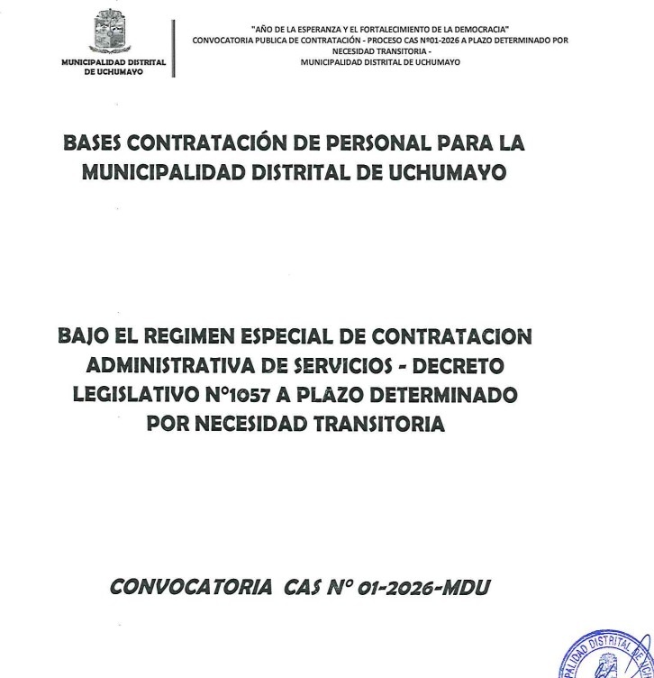 BASES DEL PROCESO CAS N° 01-2026 A PLAZO DETERMINADO POR NECESIDAD TRANSITORIA MDU