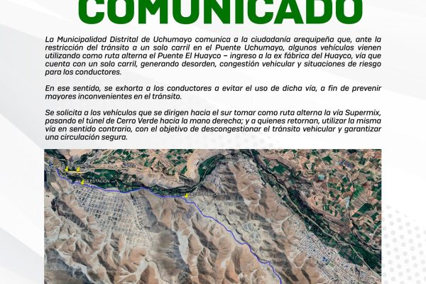 El día de hoy, en un acto solidario con nuestros hermanos distritos de Arequipa que atraviesan momentos difíciles a causa de las intensas lluvias, el alcalde de la Municipalidad Distrital de Uchumayo, Sr. Hardin Abril Velarde, dispuso el despliegue de cisternas de agua potable para atender de manera urgente a la población afectada. El apoyo…
