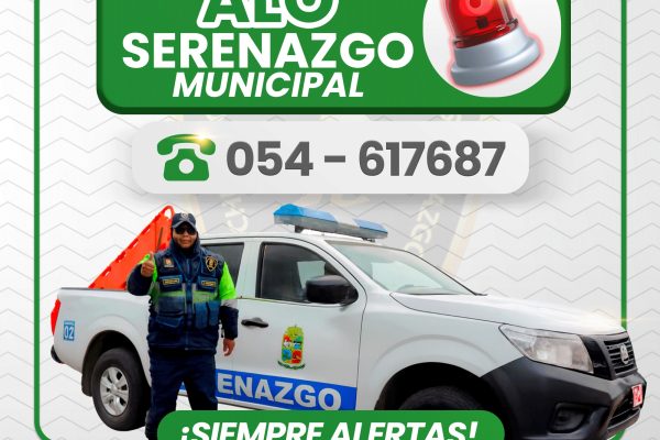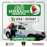 La Municipalidad Distrital de Uchumayo informa a toda la población que ya se encuentra habilitado el nuevo número telefónico de ALÓ SERENAZGO MUNICIPAL, para brindar atención inmediata ante cualquier situación de emergencia o apoyo ciudadano. ALÓ SERENAZGO MUNICIPAL: 054 – 617687