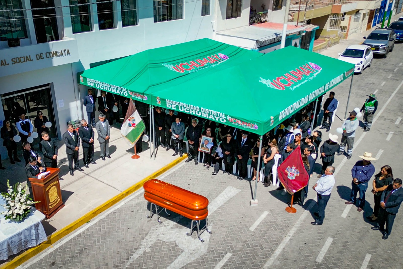 Hoy, la comunidad de Uchumayo se despidió con gran pesar de quien en vida fue Víctor Quispe Velásquez, exalcalde de la Municipalidad Distrital de Uchumayo. En una ceremonia simbólica, el actual alcalde, Sr. Hardin Abril Velarde, acompañado de los regidores, funcionarios y trabajadores de la Municipalidad, rindió un emotivo homenaje para despedir al ilustre exburgomaestre.