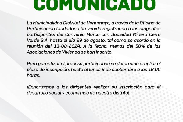 La Municipalidad Distrital de Uchumayo ofrece clases gratuitas de reforzamiento académico en diversas instituciones públicas y privadas de todos los sectores del distrito. Su objetivo es potenciar el conocimiento de los alumnos de nivel primario y secundario, brindándoles el apoyo necesario para avanzar en su aprendizaje. Estas clases no solo están diseñadas para ayudar a…