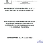 PROCESO CAS Nº 01-2025 A PLAZO DETERMINADO -MDU BASES PARA LA CONVOCATORIA DE PERSONAL BAJO EL RÉGIMEN D.L. N° 1057