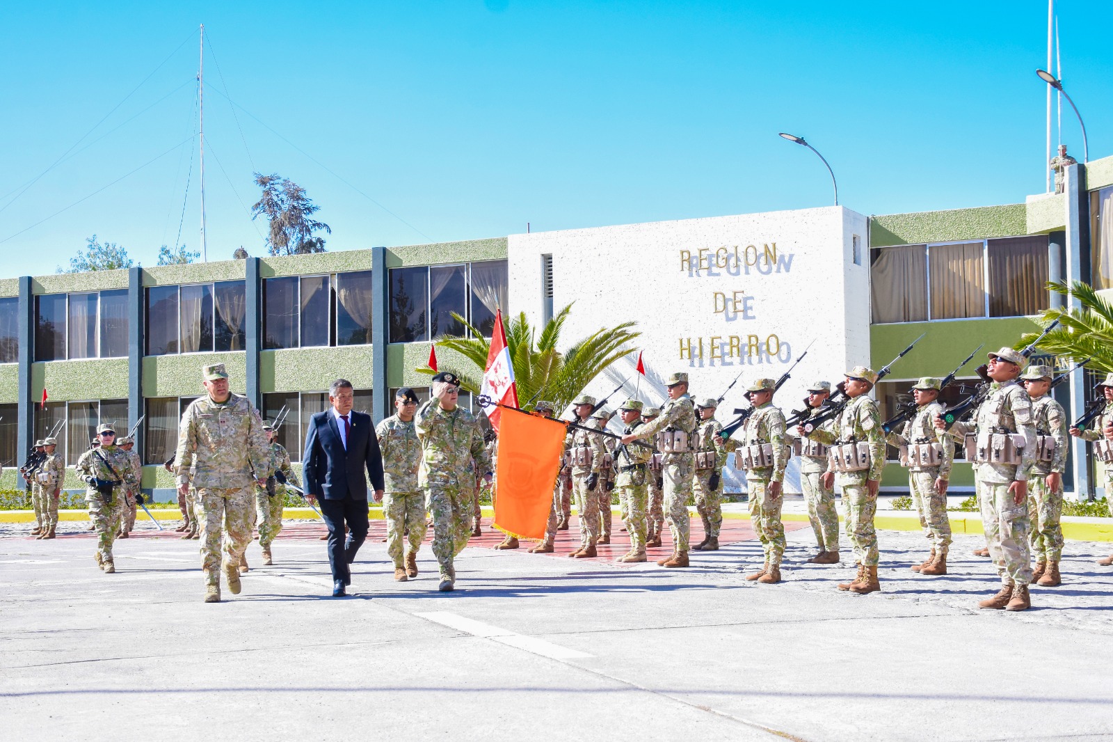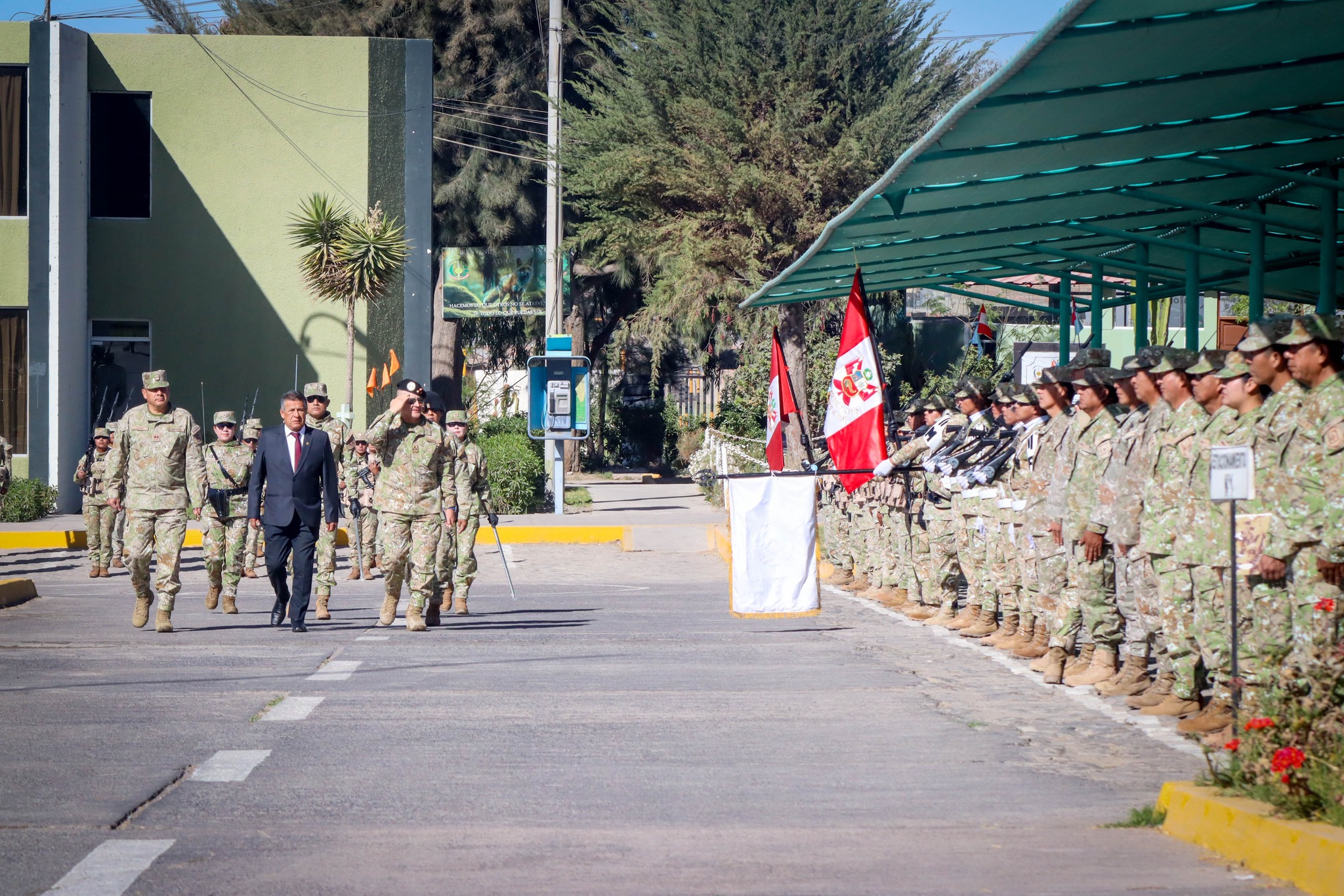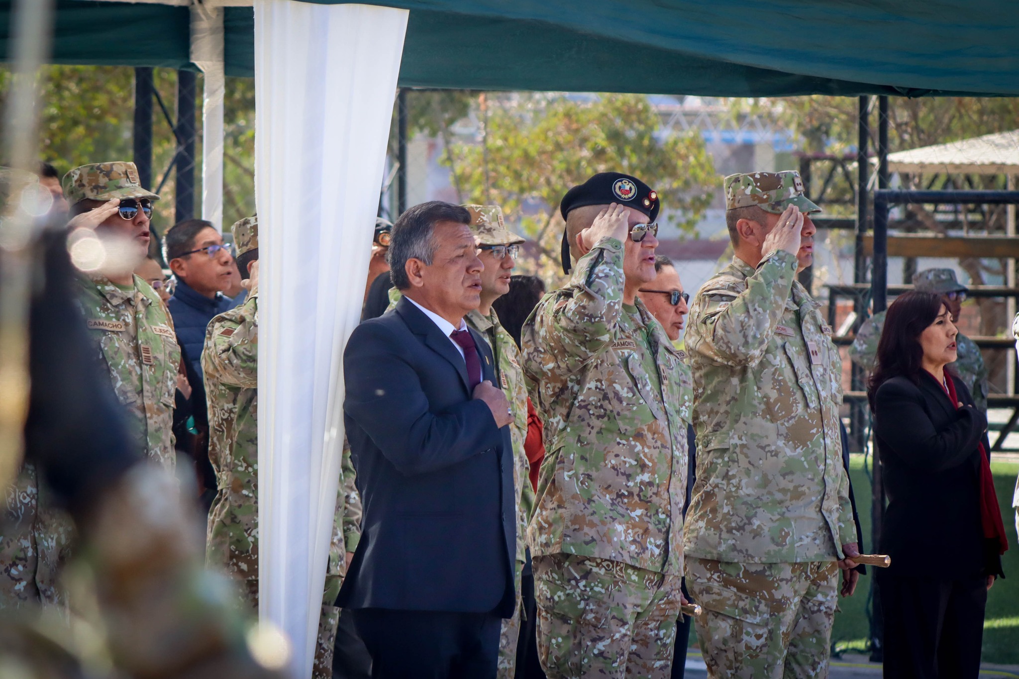 El día de hoy se realizó la ceremonia de izamiento del Pabellón Nacional en la III División del Ejército, un acto que reafirma el respeto y compromiso con los símbolos patrios. La actividad contó con la presencia del alcalde de la Municipalidad Distrital de Uchumayo, Sr. Hardin Abril Velarde, junto al Sr. General de División Jorge Luis Agramonte Aguilar, comandante general de la III División del Ejército.