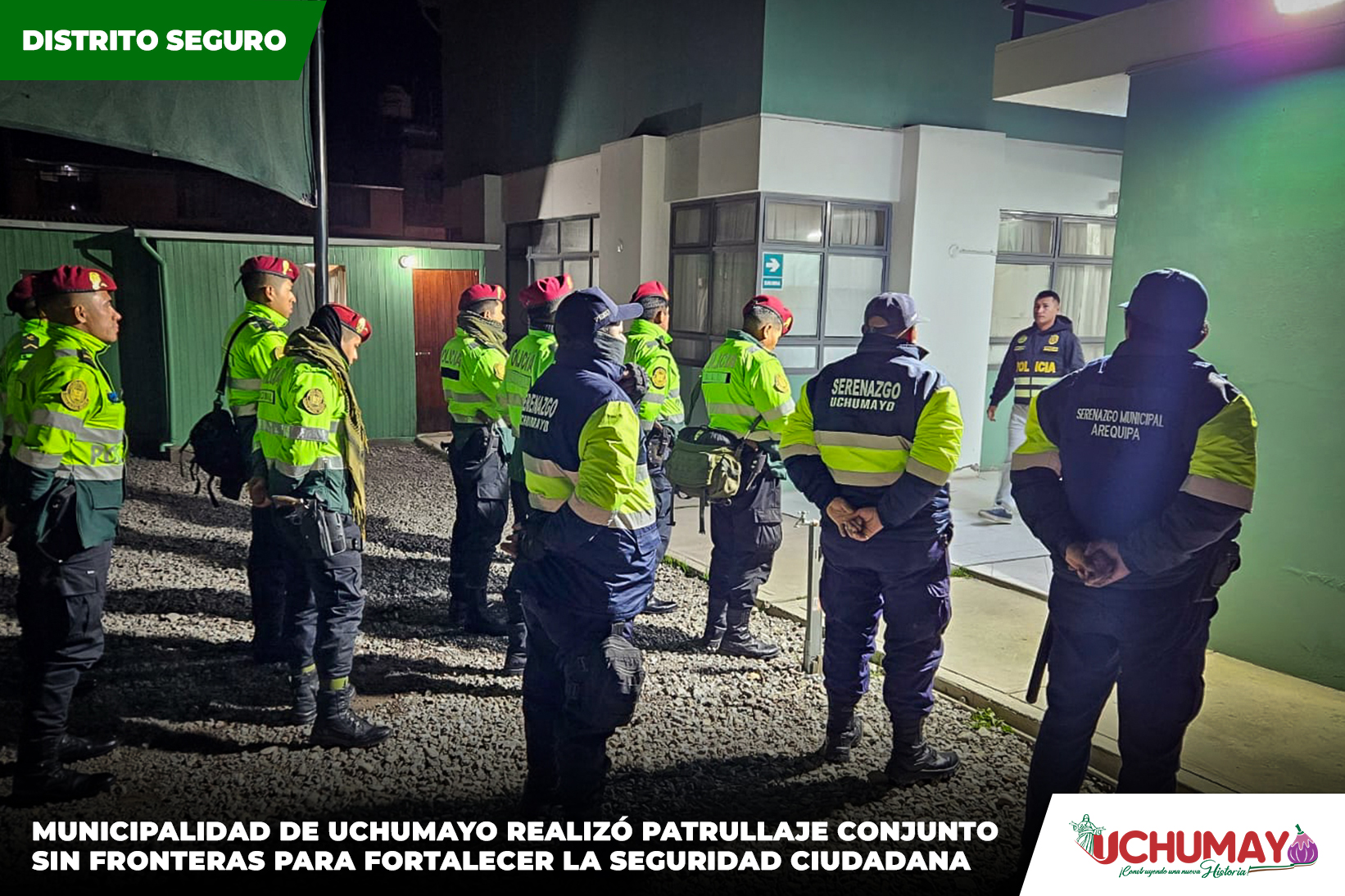 La Municipalidad Distrital de Uchumayo reafirma su compromiso de continuar impulsando acciones conjuntas con los gobiernos locales vecinos y las fuerzas del orden, a fin de garantizar la tranquilidad, el orden y la seguridad de todos los vecinos del distrito y de la provincia de Arequipa.