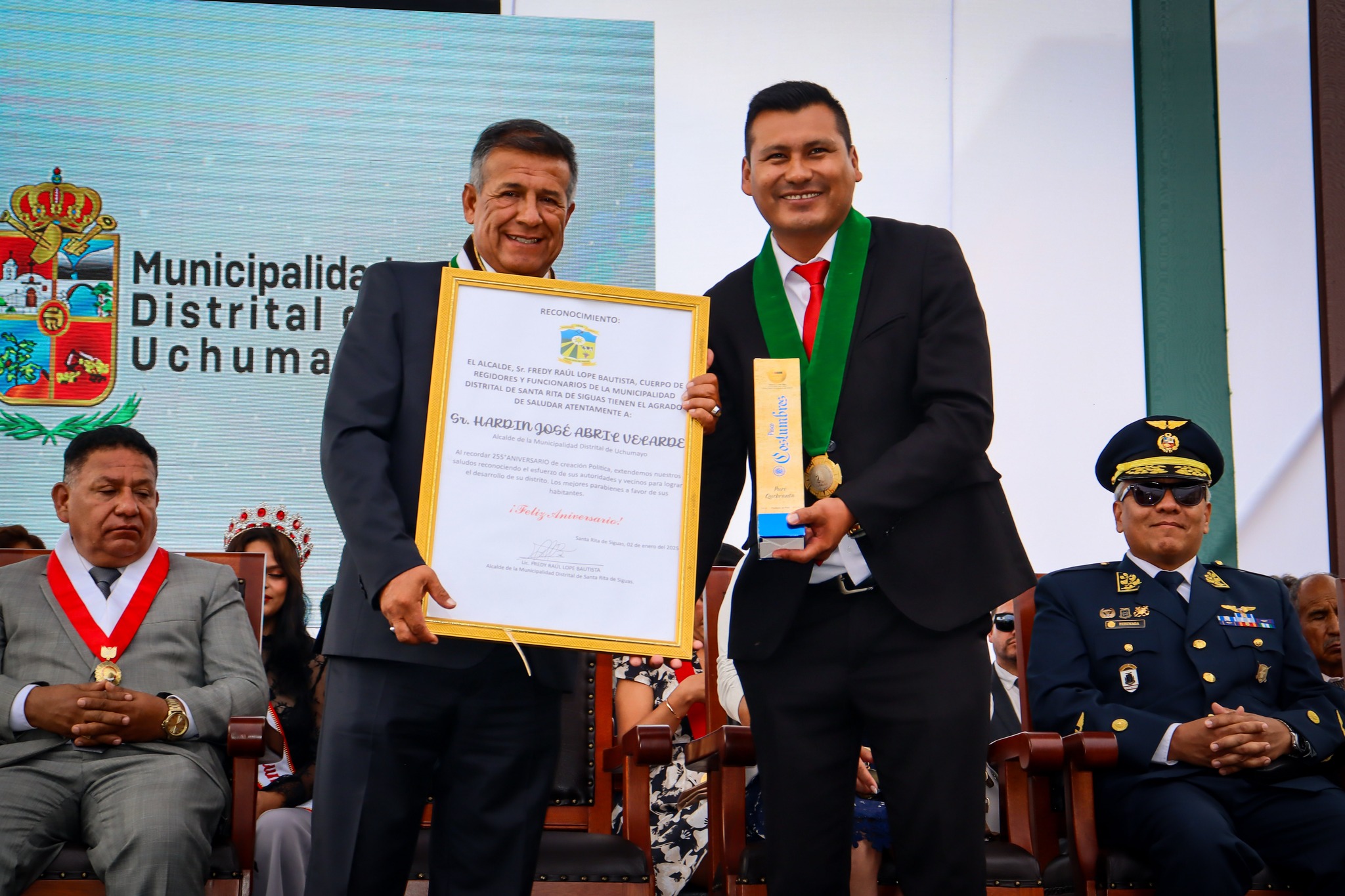 En una ceremonia llena de emoción y solemnidad, Uchumayo celebró su 255° Aniversario de creación política con una Sesión Solemne dedicada a reconocer y homenajear a los personajes que han marcado la historia y el progreso del distrito.