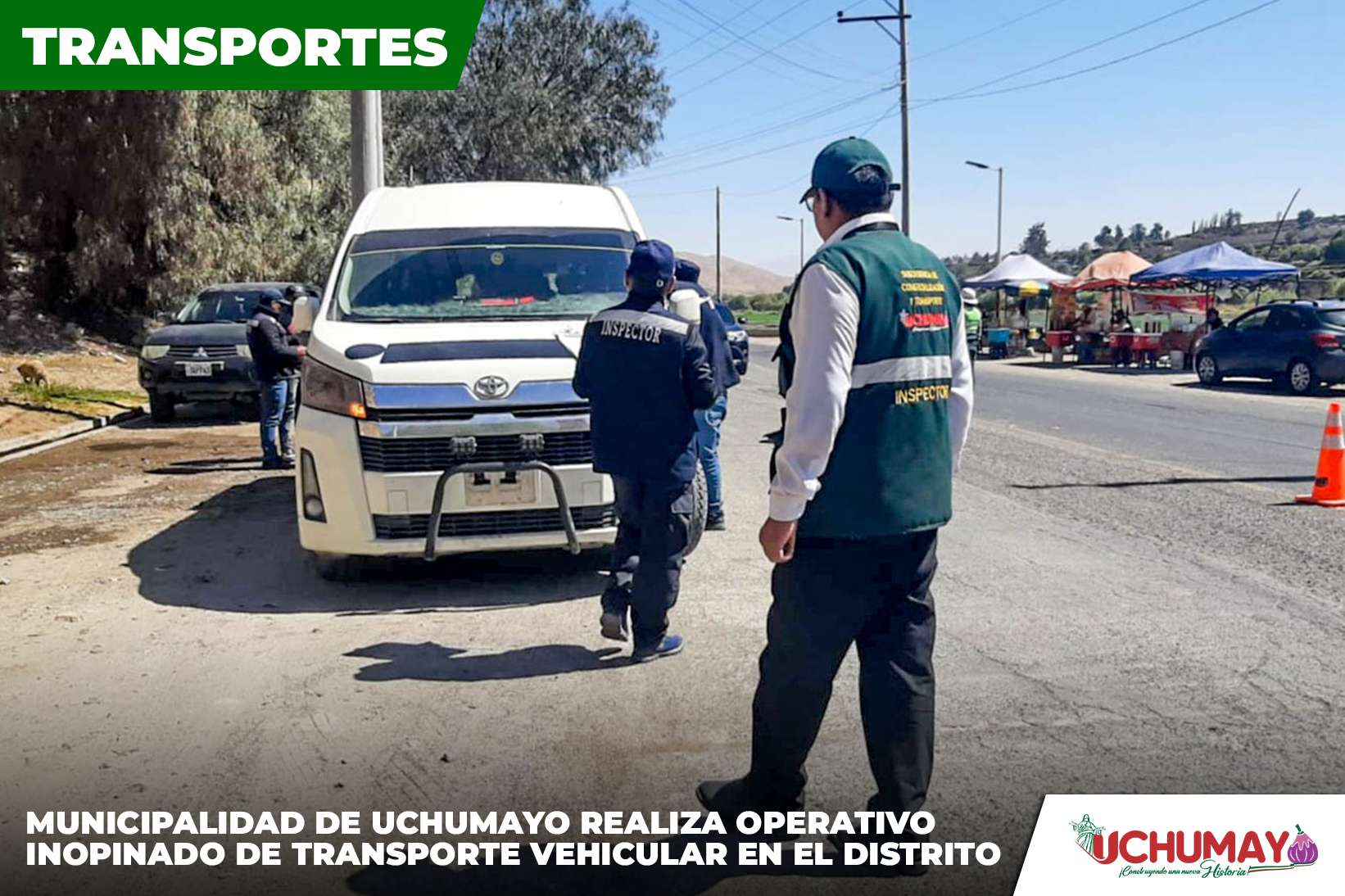 El día de hoy en horas de la mañana la Municipalidad Distrital de Uchumayo a través de la ??????????? ?? ???????????????́? ? ???????????, realizó un operativo inopinado de control dirigido a las unidades de transporte público y privado. Con el objetivo de verificar que los vehículos cuenten con la documentación necesaria.