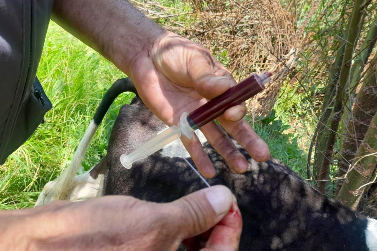 1. Realizando la hemoterapia que consiste en extraer sangre, unos 20ml de la vena yugular e inyectarla en el anca del animal afectad, se repite el tratamiento a los 7- 14- 21 días.