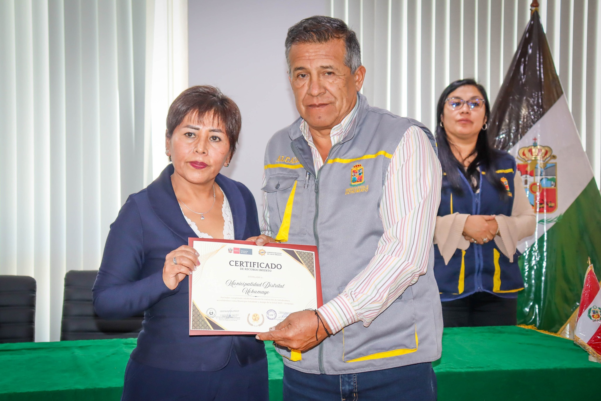 La Municipalidad Distrital de Uchumayo, liderada por nuestro alcalde Sr. Hardin Abril Velarde, recibió el día de hoy el reconocimiento como “Municipio Saludable y Amigo de la Salud”, entregado por el Gobierno Regional de Arequipa a través de la Subgerencia Regional de Salud, en mérito a las acciones implementadas para mejorar la calidad de vida de la población en coordinación con diversos actores sociales.