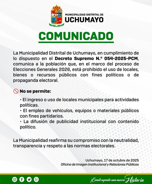 La Municipalidad Distrital de Uchumayo que la preside el Sr. Hardin Abril Velarde a través de la Sub Gerencia de Educación, Cultura y Deporte viene apoyando este tipo de actividades culturales en beneficio de los educandos.